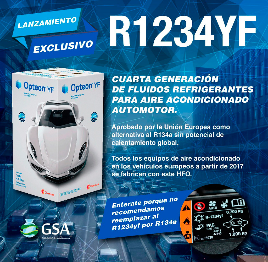 El R1234yf fue aprobado por la Unión Europea como alternativa al R134a sin potencial de calentamiento global. Todos los equipos de aire acondicionado en los vehículos europeos a partir de 2017 se fabrican con este HFO.